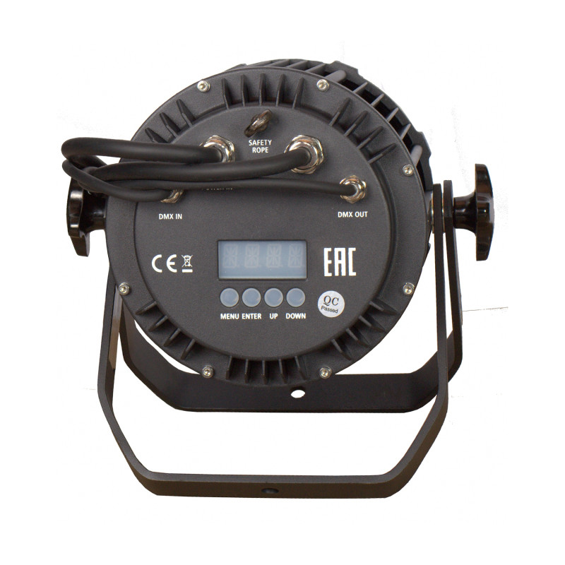 - DMX функции: Смена цвета, Смешивание цветов, Изменение программ, Строб, Диммер