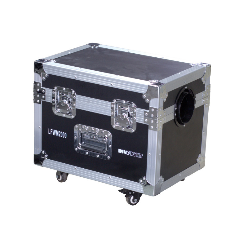 * Генератор LFWM-2000 установленный в кейсе на колесах. Корпус кейса выполнен из 9мм фанеры, по бокам установлены 2 ручки, флайт-кейсовые эксцентрик-замки на крышке, каркас - тиснёный алюминий, установлены 4 колеса, 2 с фиксатором .