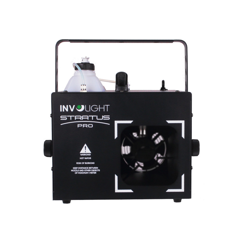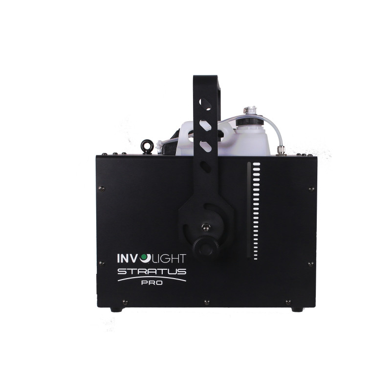 INVOLIGHT “STRATUS PRO” - это профессиональный генератор тумана с управлением по DMX, датчиком жидкости и функцией самоочистки! Эффект тумана не задымляет пространстов, а незаметно распределяется по всему помещению визуализируя световые лучи в пространстве! Благодаря особенно экономичному расходу (7 мл/мин) генератор экономичен в эксплуатации! Особого внимания заслуживает тот факт, что в STRATUS PRO не используется классический нагревательный элемент. Необходимая температура достигается с помощью нагревательного тена, который нагревает линию подачи жидкости. Эта технология особенно безопасна и надежна. Направление выброса можно регулировать с помощью регулируемой заслонки спереди. Встроенный дисплей позволяет выполнять различные настройки, такие как установка DMX-адреса, ручной режим, включение неприрывного выпуска тумана с переключением на регулировку и установку интервала, длительности и мощности выпуска тумана. “STRATUS PRO” оснащен особенно инновационным датчиком жидкости. Он определяет, что уровень жидкости в баке слишком низкий, и отключает насос.