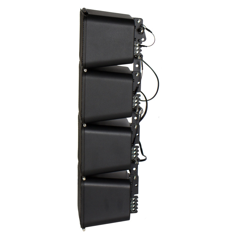 INVOTONE MLA4 элемент линейного массива, 2-полосная пассивная акустическая система. По уровню -10 дБ обеспечивается рабочий диапазон частот от 100 до 20 000 Гц. Частота среза кроссовера составляет 3 кГц. Направленность одного модуля на уровне -6 дБ – 110x20 градусов (ГхВ). На задней стенке находятся разъемы: вход и коннекторы для параллельного или последовательного подключения. Здесь же помещен переключатель параллельное/последовательное соединения. Акустическую систему можно установить в вертикальный стек или подвесить через три точки M6.