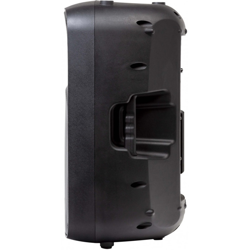 Система оснащена 12-дюймовым вуфером и 1-дюймовым твитером, работающими на усилителе класса AB мощностью до 400 Вт. Мультимедийный плеер позволяет воспроизводить музыку практически с любого цифрового устройства, будь то USB-накопитель, SD-карта или смартфон, оснащенный модулем Bluetooth. Модель снабжена bi-amp усилителем класса АВ, подающим 170 Вт на вуфер и 30 Вт на твитер. 12-дюймовый широкополосный динамик вместе с 1-дюймовым высокочастотным твиттером обеспечивают широкий диапазон воспроизведения 48 Гц - 20кГц. Имеется двухполосный эквалайзер, расположенный на задней панели. Также на задней панели расположены линейные входы для микрофонов и источников линейного сигнала, каждый из которых оснащен отдельными регуляторами уровня громкости и позволяет осуществлять подключение посредством разъемов XLR и джек 6,3 мм. Наличие линейного выхода позволит осуществить подключение дополнительной активной акустической системы. Модель оснащена 35 мм стаканом для установки на напольной стойке или штанге-расширении поверх сабвуфера.