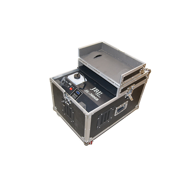 В генераторе JL-3000B используется ультразвуковая технология распыления молекул воды. Прибор работает на смеси воды и небольшого количества жидкости для генераторов тумана и способен постоянно производить белый и плотный туман на землю. Эффект впечатляет.