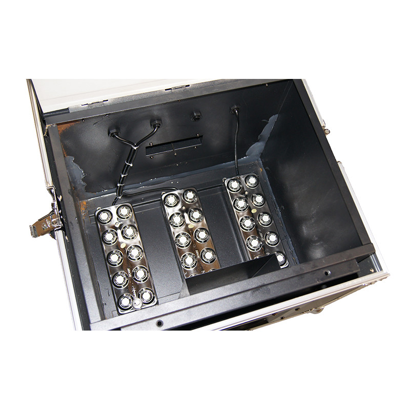 Прибор безвреден для окружающей среды, потребляет небольшое количество энергии, позволяет снизить затраты на эффекты. Прочный футляр обеспечивает удобство и безопасность перевозок. Хорошо подходит для больших сцен, театров.
