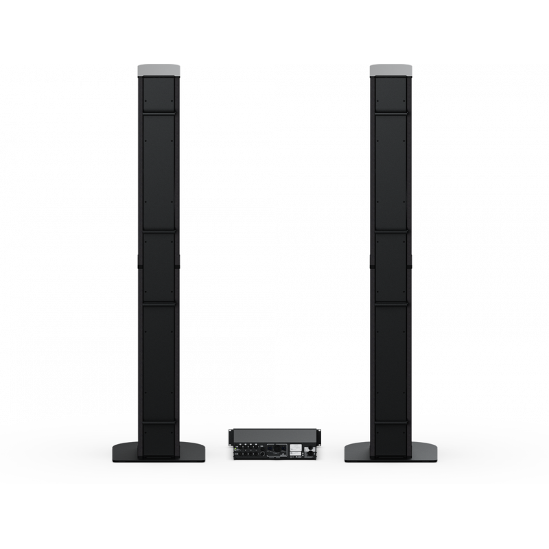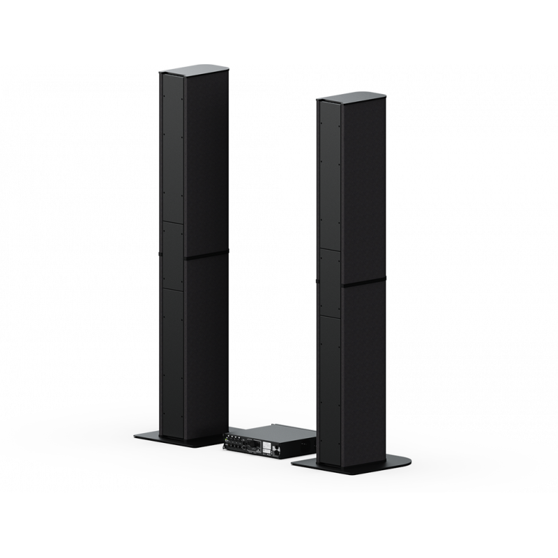 K-array Dolomite-KRD202P — это премиальный звуковой комплект, который состоит из двух полнодиапазонных акустических систем (32 двухдюймовых динамика с технологией PAT, 4 десятидюймовых сабвуфера и 4 десятидюймовых пассивных радиатора; разделено на 1-метровые секции для удобства конфигурирования), усилитель мощности KA104LIVE и основание для установки на поверхность.