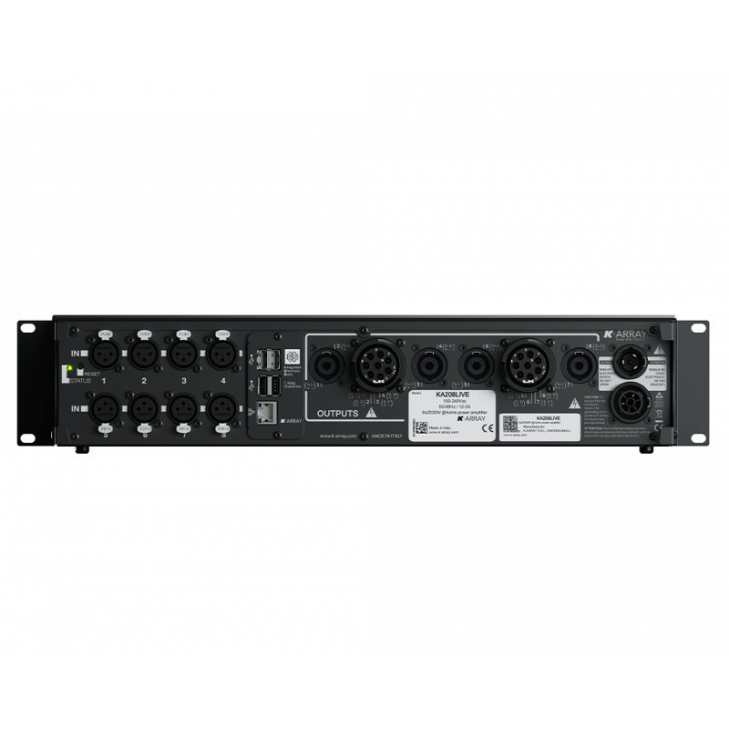 K-array Kommander-KA208LIVE+ — это 8-канальный усилитель с выходной мощностью 8×2500 Вт при 4 Ом и DSP-функциями от Kommander-KA208.