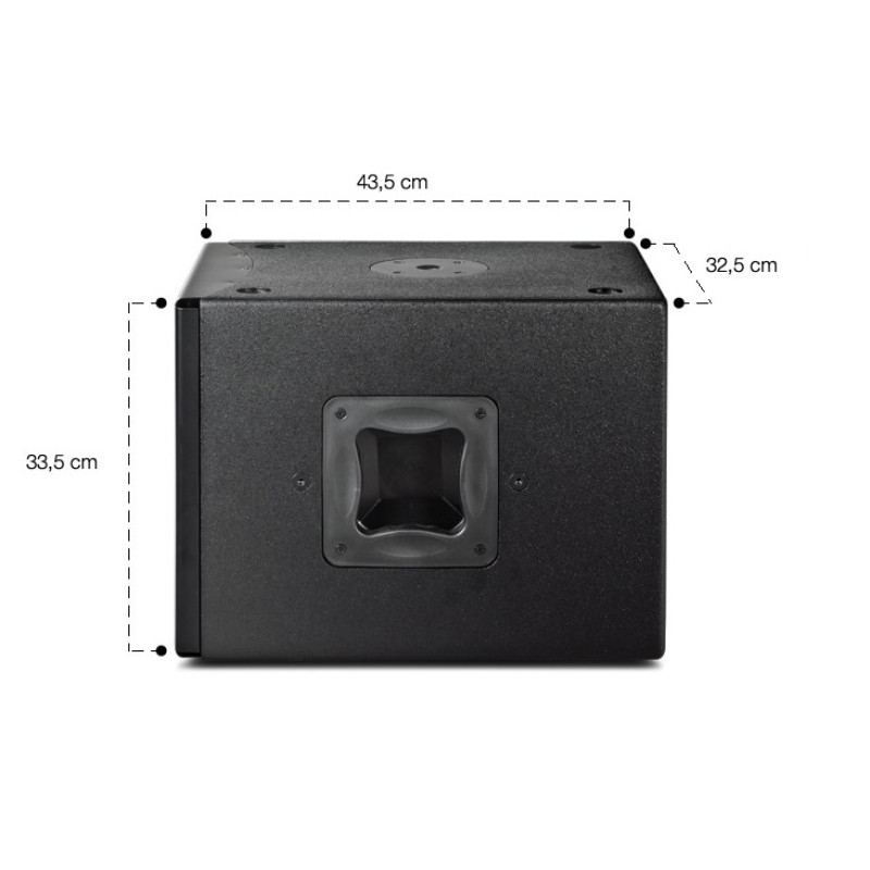 Уникальная конструкция бокса сабвуфера позволяет получить максимальную отдачу от динамика с очень низкими искажениями. Она также дает невероятную конструкционную прочность корпуса, несмотря на его легкий вес. Удобная сборка оборудования, система крепления MID-HIGH, утопленные ручки для переноски, стальные крепления на резьбе М-20 предлагают множество вариантов монтажа системы.