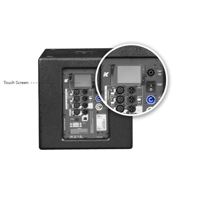 Интегрированный сенсорный экран обеспечивает интуитивно понятное управление и редактирование мощных, встроенных контрольных DSP-процессоров с помощью которых осуществляются регулировки входных и выходных уровней, генерация внутреннего тестового сигнала;«In / Out» маршрутизации, задержки на сабвуфер (до 12 мс.), «Speakon» выход к MID-HIGH элементу с задержкой (до 12 мс.); общая задержка системы (до 330 мс). Все DSP функций, включая EQ могут управляться удаленно через USB или RS485 на стандартных XLR-разъемах. Есть 40 различных предустановок DSP, специально сделанных K-array для оптимизации производительности систем различных конфигураций. Кроме того, пользователь может также создавать и сохранять собственные настройки.
