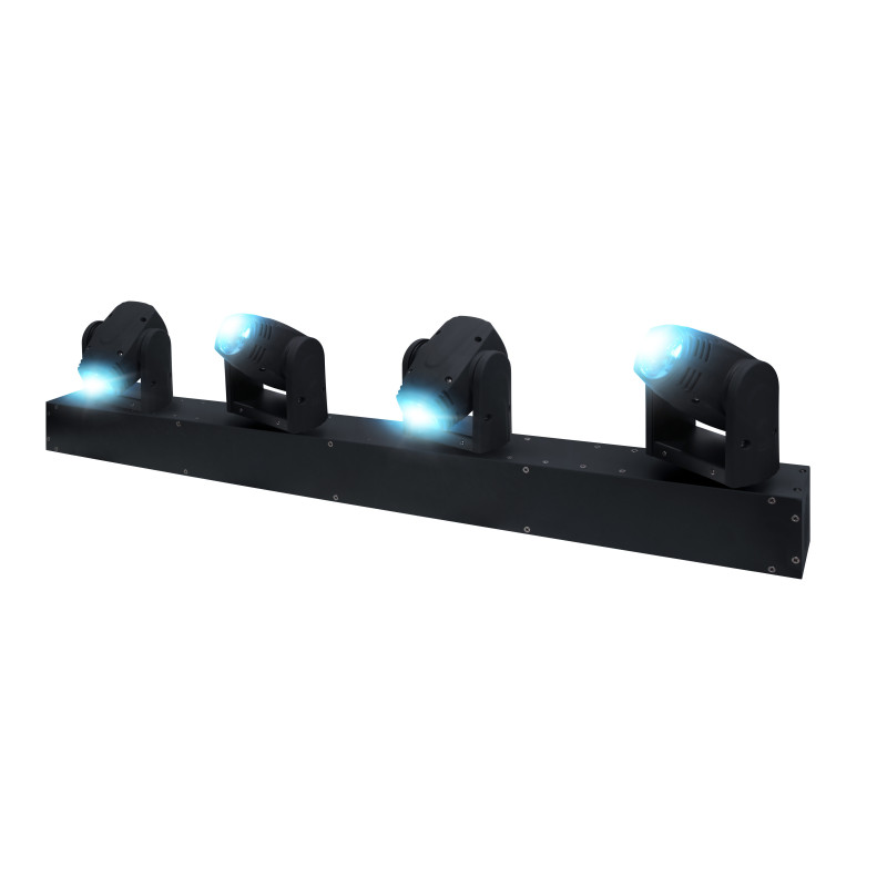 KAM KMH4 четырехлучевой светодиодный прожектор с полным движением типа WASH. 4х10Вт RGBW светодиодов, 36/52 каналов DMX, режимы ручной/DMX/автоматический/музыкальный, синхронизация master/slave, универсальный блок питания 100-240В, потребление не более 120Вт, вес 10,5кг, ДШВ 1030х85х260мм