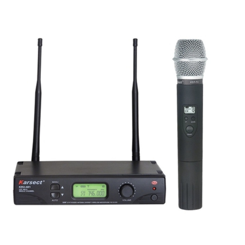 Karsect KRU-481/KST-7U двухантенная радиомикрофонная система с ручным микрофоном. 48 переключаемых UHF каналов. Ж/К дисплей. Радиус действия 100м. Радиомикрофоны и радиомикрофонные системы Karsect являются лидером в соотношении цена качество. Имеет съемные рэковые крепления и возможность горизонтального соединения нескольких баз. 2 съемные высокочастотные антены. Выходы XLR и JACK 6.3