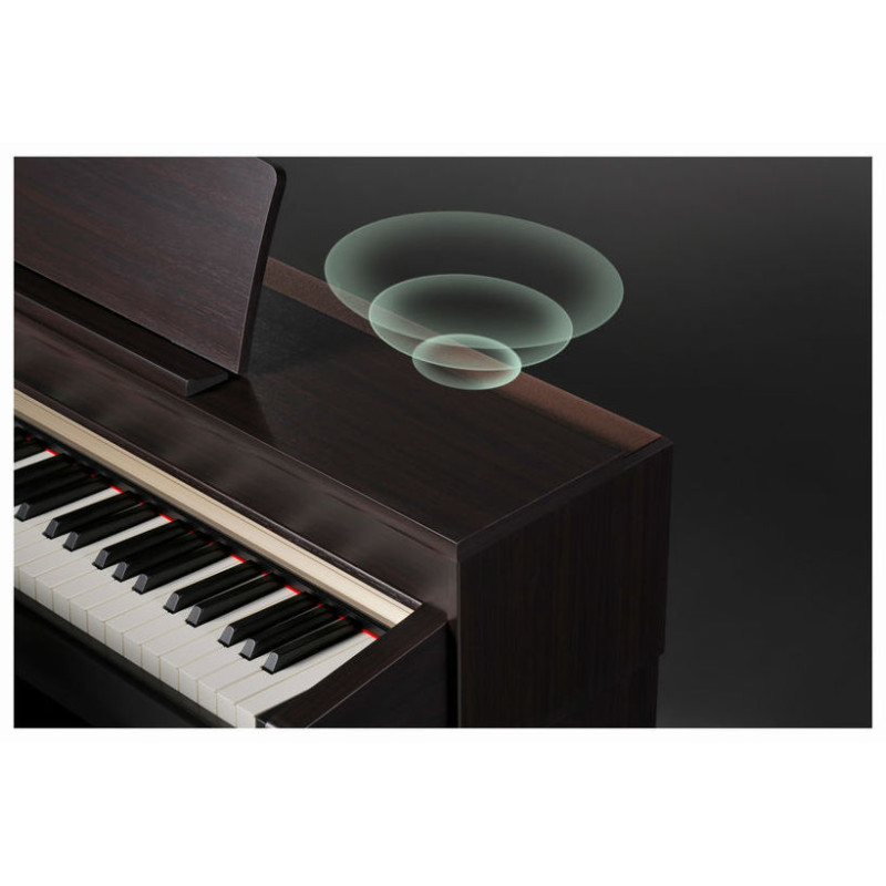 Цифровое пианино 88 клавиш с клавиатурой Actionive Hammer III, 3 датчика - имитация поверхности касания и моделирование отпускания, молоточковый механизм клавиши пластик, 16 x 2 LCD дисплей с подсветкой, 352 звуков, 9 наборов ударных, полифония 256 голосов, Bluetooth/MIDI/Wav/Mp3 Воспроизведение / запись, 31 демонстрационных песен, Выдвижная крышка клавиатуры, 3 педали с большой системой ощущения, 2 Разъема для наушников, Bluetooth 4.0, Линейный вход (L, R), Линейный выход (L / Mono, R), MIDI (вход, выход), USB-устройство для хоста, USB-устройство, динамики 2 x 20 Вт, Размеры (Ш x Г x В): 1445 x 435 x 880 мм, Вес: 54 кг, цвет палисандр