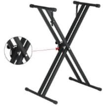 Flanger FM-801 - Стойка для клавишных инструментов Х-образная Характеристики: Х-образная одинарная стойка. Два ремешка безопасности. Материал: металл. Регулировка высоты: 30-100 см. Диаметр труб: 25х25мм / 25 мм. Длина ножки: 460 мм. Длина опоры инструм..