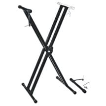 Flanger FM-802 - Стойка для клавишных инструментов Х-образная двойная Характеристики: Х-образная двойная стойка. Два ремешка безопасности. Материал: металл. Регулировка высоты: 30-100 см. Диаметр труб: 25х25мм / 25 мм. Длина ножки: 460 мм. Длина опоры и..