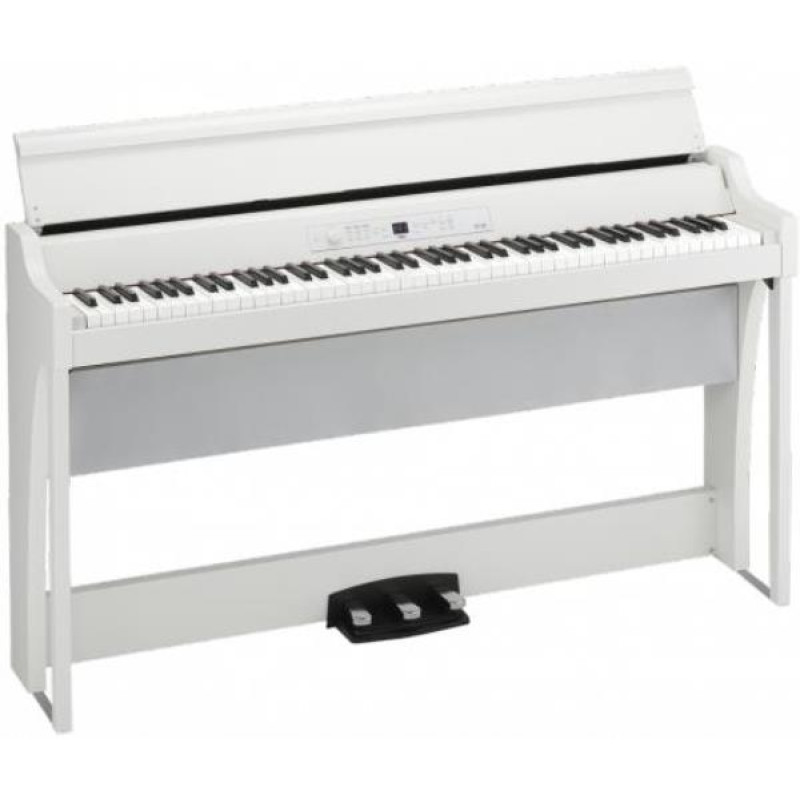 KORG G1 AIR-WH современное многофункциональное цифровое пианино с великолепным звуком. Модель отличается чрезвычайно естественными ощущениями при игре. Молоточная клавиатура Real Weighted Hammer Action 3 с 88 клавишами, чувствительными к нажатию, делает ощущения при игре очень натуральными, как будто Вы играете на настоящем акустическом фортепиано. Предусмотрено пять уровней чувствительности. Цифровое пианино KORG G1 способно воспроизводить звучание трёх знаменитых роялей: немецкого, австрийского и японского. Для каждого исполняемого произведения Вы можете выбрать, какой вариант звучания использовать. 120-нотная полифония позволяет получить великолепный объемный звук с прекрасной динамикой. В дополнение к 3 вариантам фортепианного звучания доступно ещё 32 звучания различных инструментов, включая орган и струнные инструменты. Три вида эффектов: реверберация, яркость и хорус позволяют настроить звучание по Вашему вкусу, открывая широкие перспективы для импровизации. Есть возможность записи своих композиций. Встроенная акустическая система с четырьмя динамиками по 20 Вт каждый выдаёт звук великолепного качества. Особенность модификации G1 AIR – возможность беспроводного соединения по Bluetooth для того, чтобы играть под любимые композиции, динамики пианино можно также использовать как беспроводную акустическую систему. Представленная модель G1 AIR-WH – элегантного белого цвета.