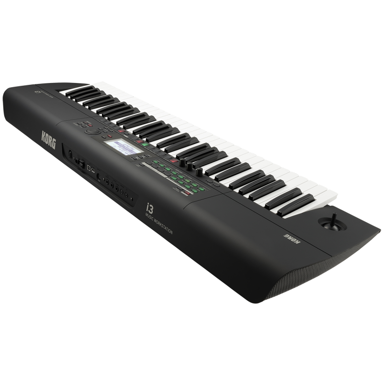KORG i3 — это полнофункциональная рабочая станция, обладающая 61 полноразмерной, чувствительной к скорости нажатия клавишей. Отклик легко регулируется при помощи трех сенсорных кривых; четвертая настройка обеспечивает фиксированный выходной уровень. Кнопки OCTAVE смещают высоту звука вверх или вниз на две октавы с шагом в октаву. Профессиональный джойстик позволяет в режиме реального времени настраивать питч бенд, вибрато и яркость во время выступления, а дополнительный 2-полосный эквалайзер (НЧ и ВЧ) обеспечивает окончательную регулировку общего тона. Все кнопки и регуляторы на передней панели удобно сгруппированы по функциональности, пользовательский ЖК-дисплей с подсветкой обеспечивает визуальную обратную связь относительно текущих настроек инструмента. Поворотный энкодер может быстро редактировать значение экранных параметров. Затемненная отделка, прорезиненная сенсорная поверхность и перфорированные торцевые панели отражают характерный высококлассный дизайн.
