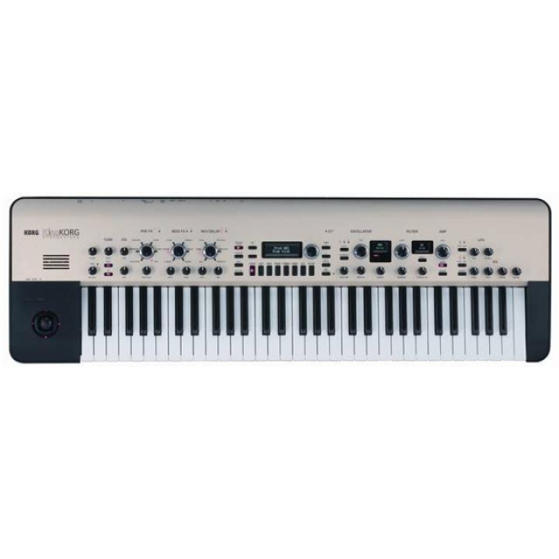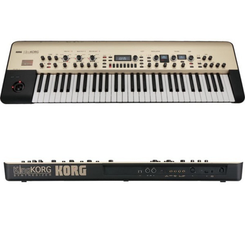 Korg King Korg, аналоговый синтезатор моделирования, 61- полувзвешенных клавиш чувствительных к скорости нажатия, 24-голоса полифония, XMT (расширенная технология моделирования), 300 пресетов (200 + 100 пользовательских), макс. 2 тембра (Layer / Split), 3 Эффект-секций + мастер-эквалайзер, 16-полосный вокодер с нажатой Formant и Formant Удержание, арпеджиатор, Основной дисплей: 16 символов х 2 строки / OLED, Sub дисплеи для генератора и фильтра: 128 х 64 точек / OLED, подключение: XLR микрофонный вход, 2x ¼ "TR Line-Out L / R, CV / Gate-выход, выход для наушников, MIDI In / Out , USB, для соединения заслонки и педали Switch / педали Размеры: 1027 x 313 х 96 мм (Ш x Г), вес: 7 кг