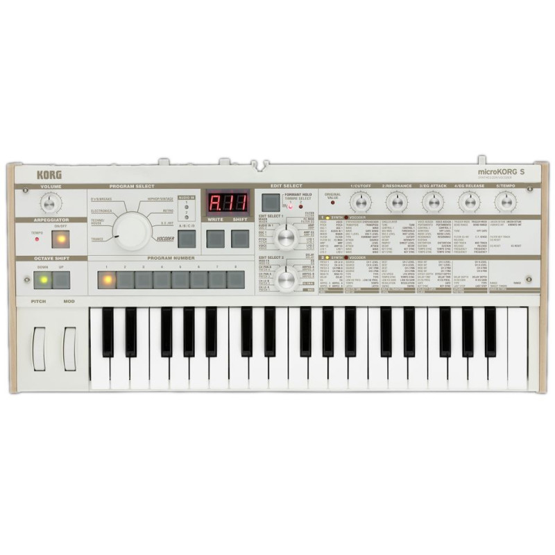 KORG microKORG S MK-1S – обновлённая версия знаменитой модели синтезатора/вокодера 2002 года «microKorg». Новый синтезатор обладает тем же широким функционалом, что и первая модель. Он оснащён 37 мини-клавишами, полифония – четырёхголосная. Модель имеет современный эргономичный дизайн и получила ряд новых современных функций. Синтезатор заключен в прочный корпус элегантного белого цвета. Память синтезатора разделена на несколько отдельных банков, двух из которых хранятся 128 оригинальных программ, идентичных первой модели microKorg, третий банк содержит 64 новых современных программы, ещё один банк предназначен для сохранения собственных программ пользователя, также 64 программы. Одна из удобных новых опций microKORG S MK-1S позволяет моментально получать доступ к избранным звукам. Электропитание синтезатора осуществляется от сетевого адаптера. Он также может работать полностью автономно, питаясь от батарей. Встроенная акустическая система выдаёт звук прекрасного качества. Возможности коммутации включают 3 разъёма MIDI, по 2 аудио входа и выхода, а также разъем для подключения наушников.