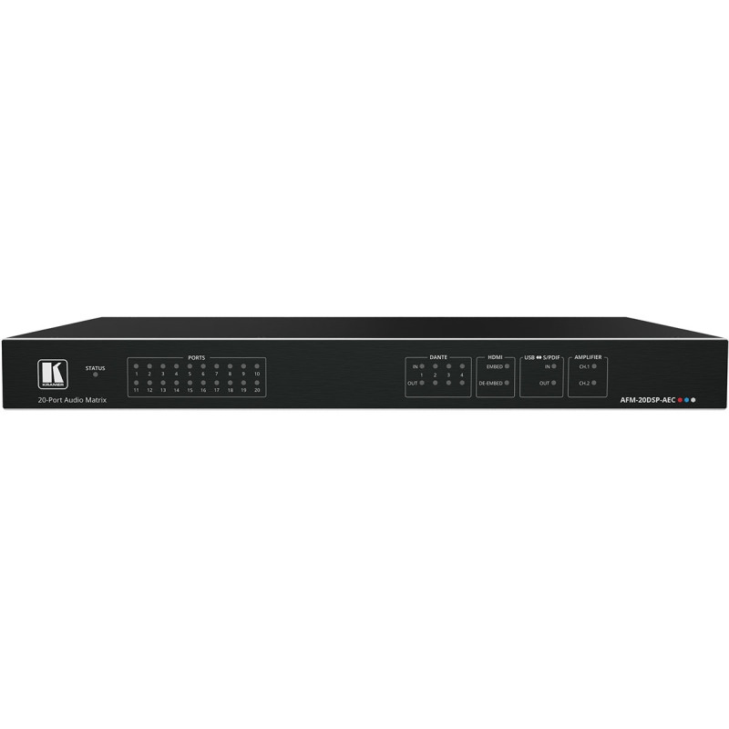 AFM-20DSP-AEC — устройство, входящее в семейство продуктов с цифровой обработкой аудиосигналов (DSP) Kramer XSPerience, представляющее собой специализированный матричный коммутатор аудиосигналов с 20 аналоговыми портами.