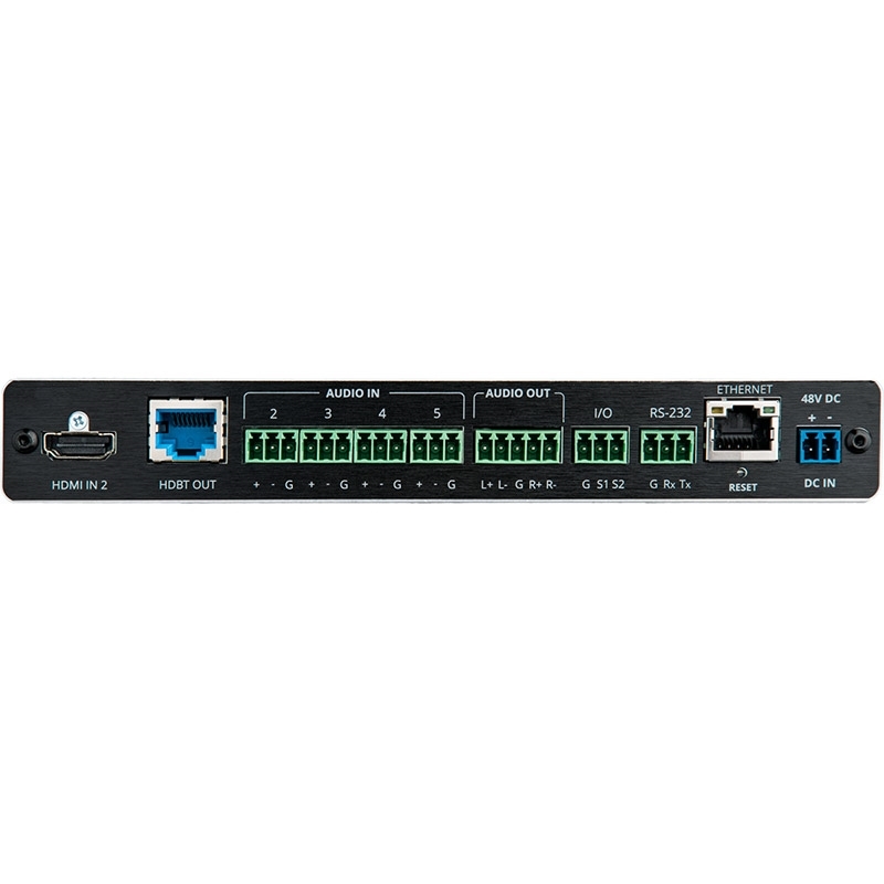 | Выходы | 1 – витая пара HDBaseT, разъем RJ45 (розетка) 1 – балансное аудиостерео, клеммный блок |