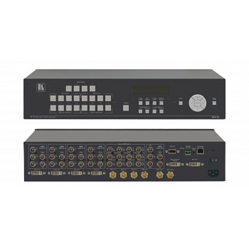 Универсальный мультиоконный видеопроцессор принимает по входам сигналы DVI-D (HDMI), аналоговые сигналы разрешений SD и HD различных форматов с разрешениями до 1920x1200, 60 Гц, а также сигналы SDI до HD-SDI 3G.