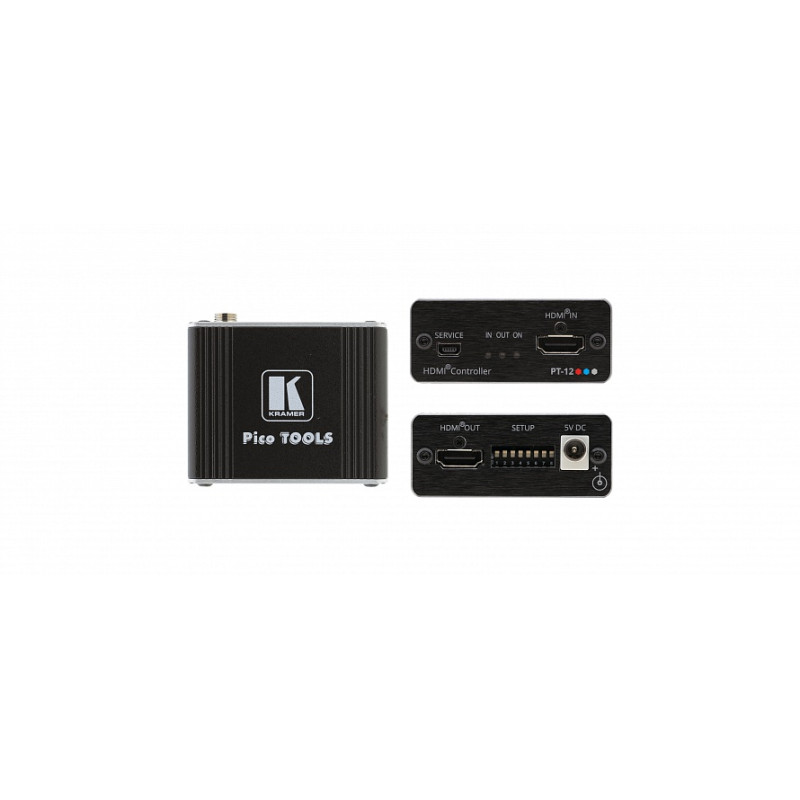 Kramer PT-12 – процессор EDID и CEC-контроллер для работы с сигналами HDMI с разрешением до 4K@60 Гц (4:2:0). Устройство автоматически включает дисплей при подключении кабеля HDMI и выключает его при потере сигнала. Устройство также выполняет функции процессора EDID.