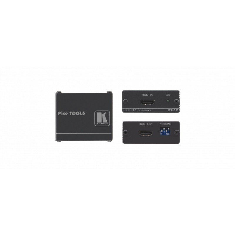 Kramer PT-1C — эмулятор EDID и «решатель проблем», связанных с работой служебного канала DDC (обработка EDID и поддержка HDCP). Прибор не влияет на аудио и видео потоки данных и поддерживает разрешения до 4K (Ultra HD).