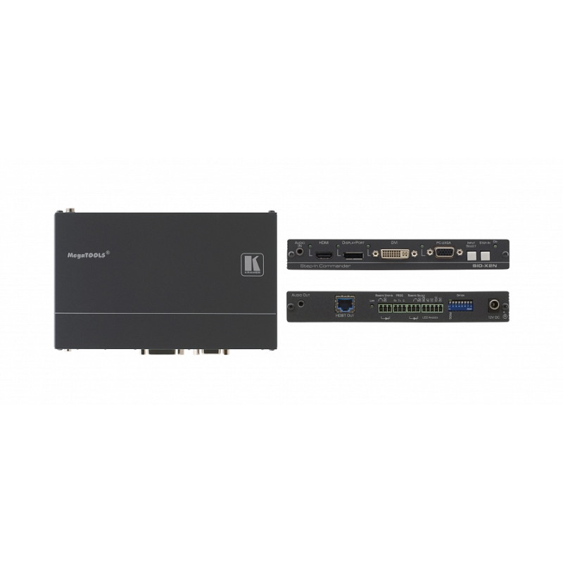 Kramer SID-X2N - передатчик по кабелю на витой паре HDBaseT с функцией дистанционной активации для сигналов VGA, HDMI, DVI, DisplayPort и небалансного стереофонического аудиосигнала.