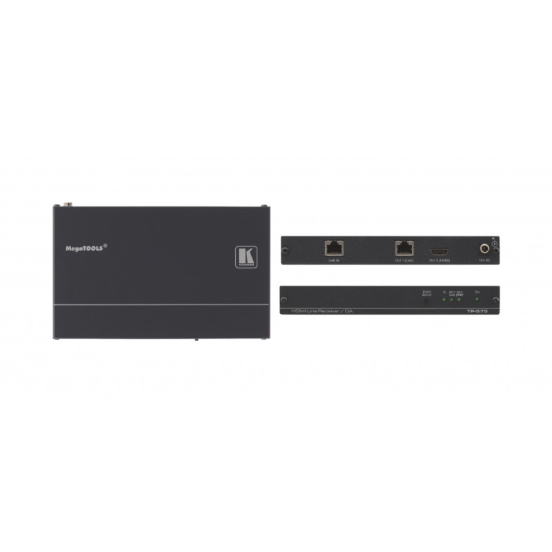 KRAMER TP-575 TP - 575 - приемник и линейный усилитель сигнала HDMI, передаваемого по кабелю на витой паре. Прибор принимает сигнал с витой пары и выдает сигнал HDMI, а также сигнал для дальнейшей передачи по витой паре.