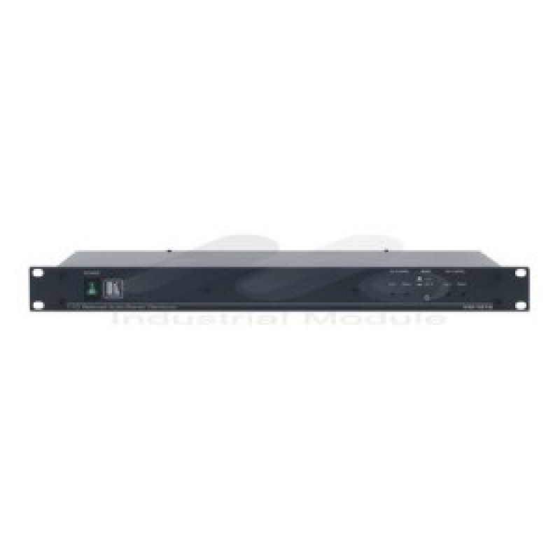 Kramer VM-1610 - усилитель-распределитель звука вещательного качества с двумя входами. Предназначен для распределения звуковых симметричных стерео сигналов (клеммные модульные разъемы). Устройство может работать как одиночный распределитель, усилитель звука 1:10 либо как два раздельных распределителя, усилителя звука 1:5. Выбор режима осуществляется при помощи кнопки, расположенной на передней панели. Каждый режим позволяет формировать идентичные выходные сигналы для различных студийных и эфирных систем. Новейшие схемы усилительных каскадов Bi-Fet, а также мощная система дискретной буферизации позволяют отнести VM-1610 к разряду первоклассных устройств. Все схемы устройства являются активными и бестрансформаторными, что позволяет избавиться от паразитных шумов и работать в полном диапазоне частот. Прибор выпускается в надежном и прочном корпусе и может устанавливаться в стандартную 19" стойку (занимаемая высота - 1 U).