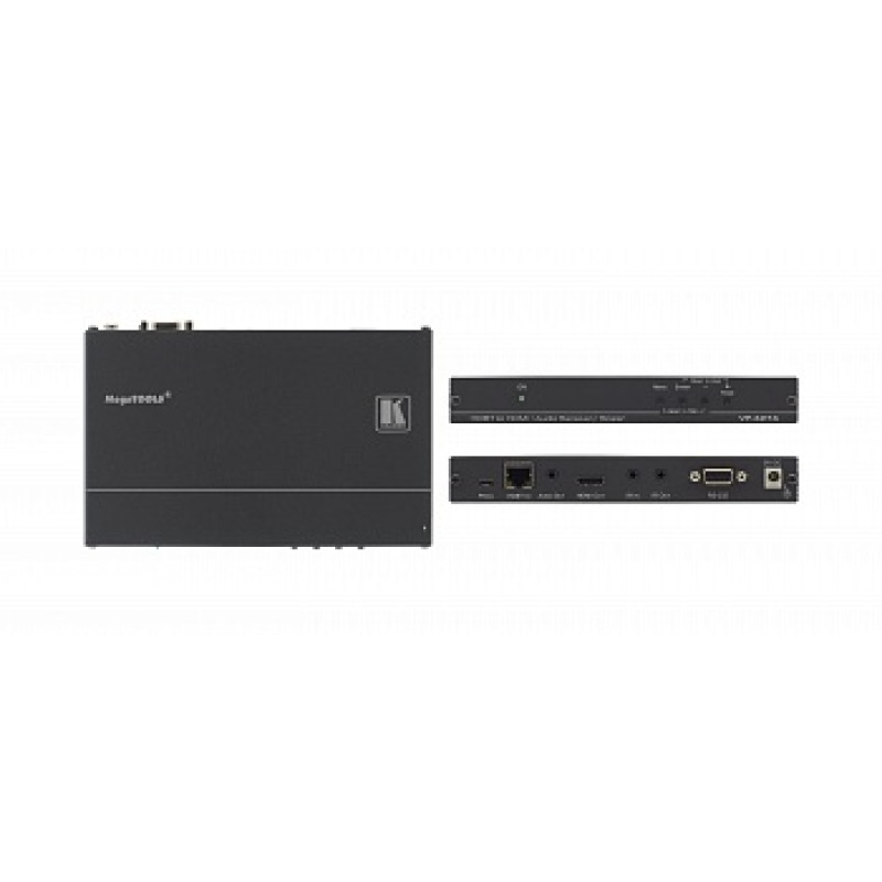 Kramer VP-427А — это приёмник сигнала HDMI, двунаправленного интерфейса RS-232 и ИК сигнала по кабелю на витой паре по технологии HDBaseT. Прибор преобразует выходной сигнал с повышением или понижением разрешения. Прибор производит деэмбедирование аудиосигнала из входного сигнала HDMI и выдает на аналоговый выход.
