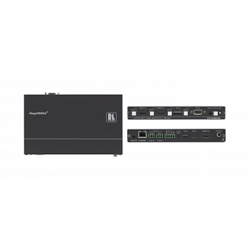 Kramer VP-429H2 – коммутатор и масштабатор для сигналов HDMI, DisplayPort и VGA с разрешением до 4K@60 Гц (4:4:4), а также небалансного аудио. Устройство масштабирует входной сигнал и выводит его на HDMI выход. Поддержка технологии Step-In обеспечивает простоту и удобство совместной работы участников при использовании поддерживающих технологию Step-In коммутаторов HDMI. Устройство обеспечивает удаленное включение монитора или проектора по RS-232, возможность собственного управления по Ethernet и RS-232, а также осуществление функции Step-In, циклического переключения входов и регулировки громкости путем замыкания сухих контактов.
