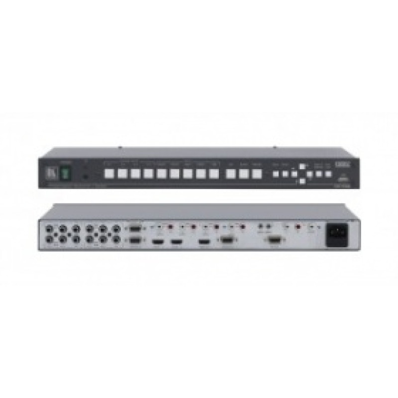 KRAMER VP-728 [VP-553xl] Сдвоенный масштабатор HDMI, HDBaseT, CV, VGA, TP в HDMI / HDBaseT[VP-728] Масштабатор видео и графики / коммутатор без подрывов сигнала. 9 входов, включая HDMI и USB, выходы VGA, HDMI, HDTV, функция "картинка в картинке"