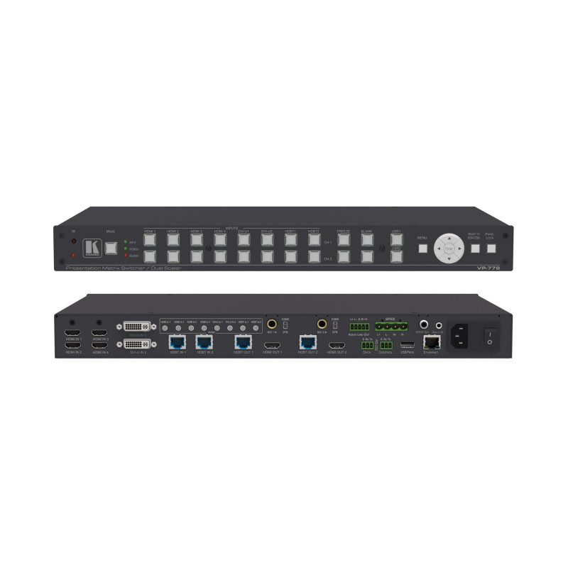 KRAMER VP-778 [VP-778] Сдвоенный масштабатор HDMI, HDBaseT, VGA, CV, YUV в HDMI / HDBaseT; поддержка 4К 30 Гц