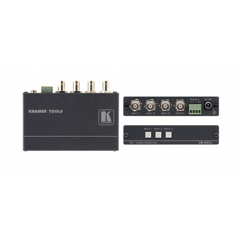 Kramer VS-33VXL - высококачественный коммутатор 3x1 для композитного видеосигнала. Переключение в интервале кадрового гасящего импульса при использовании синхронизированных источников гарантирует отсутствие помех.