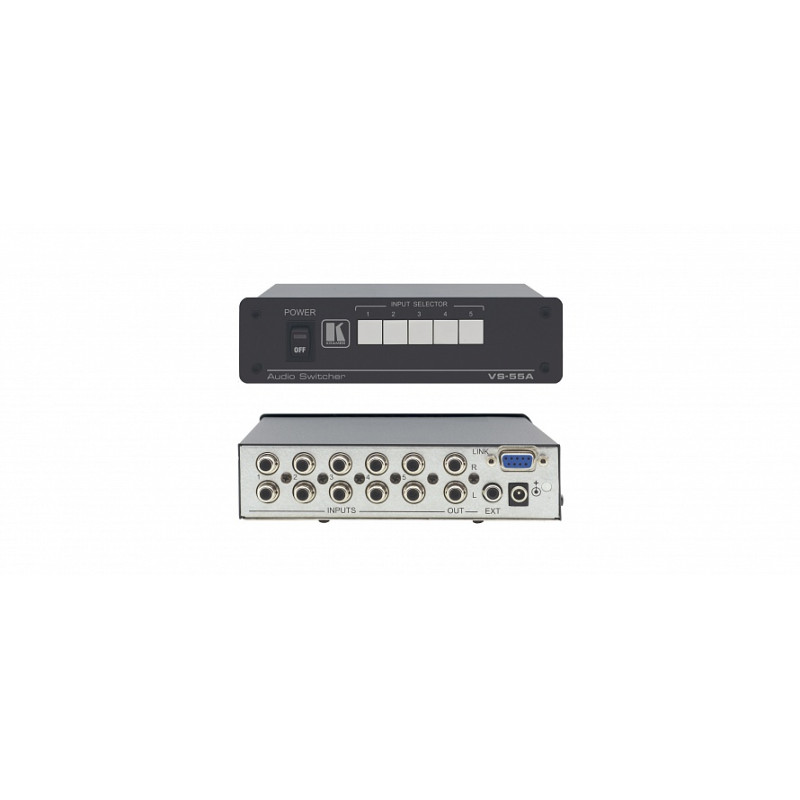 Kramer VS-55A - высококачественный коммутатор аудио стереосигналов 5:1 (разъемы RCA). С его помощью на одно приемное устройство (например, монитор, проектор и т.п.) можно направить один из пяти входных сигналов. На панели устройства также находится разъем EXT, который позволяет объединять несколькоVS-55Aв более крупные коммутационные системы. Например, объединение двух модулей позволяет получить коммутатор 10:1, трех - 15:1 и т.д. Также легко связывается с другими коммутаторами серииVS-55(VS-55Vдля композитных сигналов видео, или сVS-55YCдля сигналов S-video), образуя разветвленные коммутационные системы. В комплект входит внешний источник питания 12 В. Также используется с блоком питанияVA-50P(опция), который способен обеспечивать электропитание до 6 приборов Kramer, рассчитанных на 12 В. Прибор устанавливается в стандартную 19” стойку с помощью адаптераRK-1(два модуля, высота 1 U).