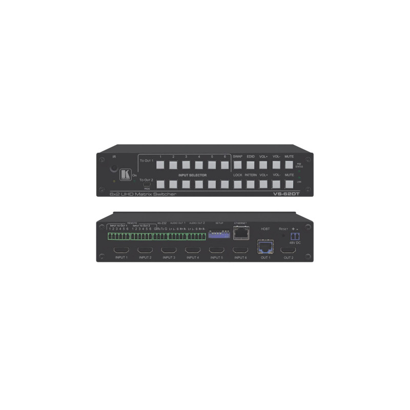 KRAMER VS-62DT [VS-62DT] Матричный коммутатор 6х2 HDMI; выходы на витую пару HDBaseT, поддержка 4К 60 Гц (4:2:0), поддержка PoE