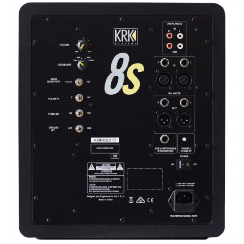 KRK 8S2 – активный сабвуфер, подходящий для расширения диапазона нижних частот при использовании в сочетании со студийными мониторами Rockit, VXT и другими моделями KRK. 8S2 – это младшая модель из линейки «S». Высококачественный 8-дюймовый композитный динамик выдает мощность 109 Вт. Модель отличается очень естественным, ровным, чистым и четким звуком даже при высоком уровне звукового давления. Модель заключена в прочный обтекаемый корпус из усиленного МДФ толщиной 15 мм современного дизайна. Динамик защищен надежной решеткой. Имеется активный кроссовер с переключаемой частотой, регулятор входной чувствительности и переключатель полярности (0/180 градусов). Широкие возможности коммутации делают использование этой модели удобным в любой студии. Есть возможность подключения через разъемы XLR, RCA или 1/4 джек. Предусмотрена функция bypass для обхода сабвуфера, которой можно управлять с помощью ножного переключателя. Модель представлена в черном цвете с виниловым покрытием.