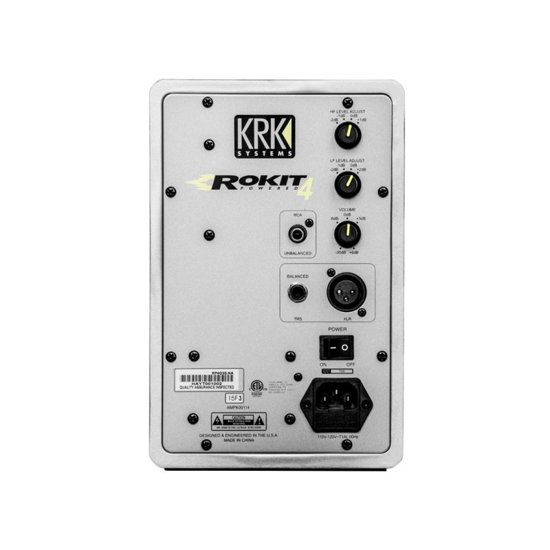 KRK RP4G3S - студийный монитор. Данная модель является профессиональным студийным монитором ближнего поля с 4-дюймовым динамиком. Монитор оснащен независимыми усилителями для ВЧ динамика и для НЧ динамика, что позволяет избежать искажений в звучании, а также улучшить детализацию звука. ВЧ динамик диаметром 1" оснащен усилителем мощностью 10 Вт, а НЧ динамик диаметром 4" оснащен усилителем мощностью 20 Вт. Несмотря на небольшой диаметр динамика, данная модель обладает широким диапазоном частот от 51 Гц до 35 кГц. НЧ динами изготовлен из композитного материала, а корпус монитора изготовлен из усиленного МДФ. Специально разработанный волновод гарантирует детализированное отображение во время прослушивания. Данная модель монитора идеально подойдет для домашних студий небольших размеров.