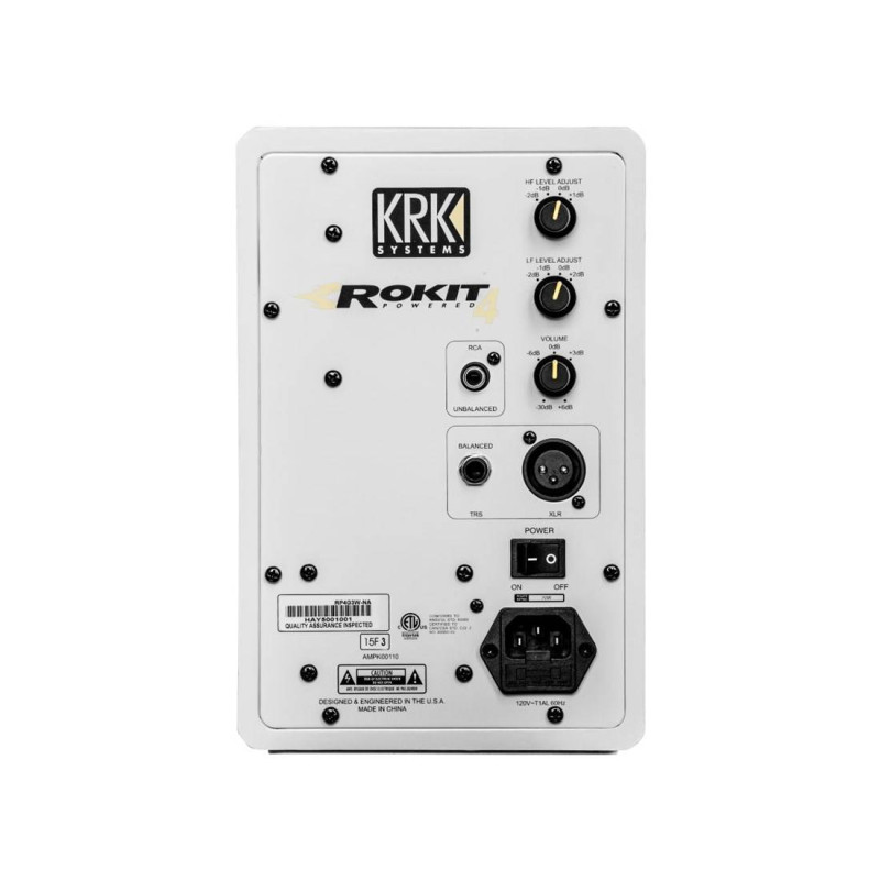 KRK RP4G3W - студийный монитор. Данная модель является профессиональным студийным монитором ближнего поля с 4-дюймовым динамиком. Монитор оснащен независимыми усилителями для ВЧ динамика и для НЧ динамика, что позволяет избежать искажений в звучании, а также улучшить детализацию звука. ВЧ динамик диаметром 1" оснащен усилителем мощностью 10 Вт, а НЧ динамик диаметром 4" оснащен усилителем мощностью 20 Вт. Несмотря на небольшой диаметр динамика, данная модель обладает широким диапазоном частот от 51 Гц до 35 кГц. НЧ динами изготовлен из композитного материала, а корпус монитора изготовлен из усиленного МДФ. Специально разработанный волновод гарантирует детализированное отображение во время прослушивания. Данная модель монитора идеально подойдет для домашних студий небольших размеров.