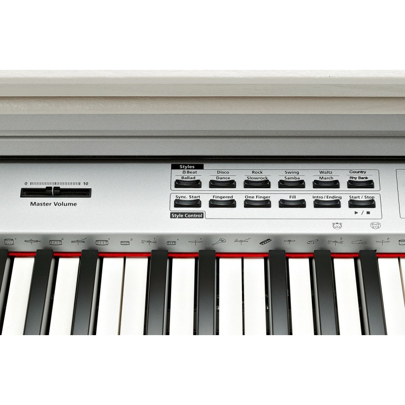 Удобный современный корпус представлен в белой и палисандровой отделке с двойной 20-ваттной звуковой системой. Инструмент имеет разъемы для микрофона, MP3-устройства и 2 входа для наушников.