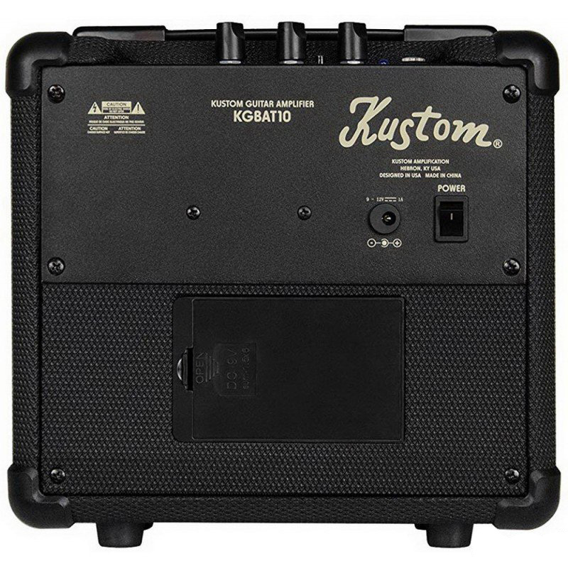 Kustom KGBAT10 - представляет собой портативный комбинированный усилитель, разработанный для использования с электрогитарой. Данная модель построена на основе транзисторной схемы и способна обеспечить до 10 Вт мощности для каждого из двух каналов - чистого (Clean) и перегруженного (Overdrive).