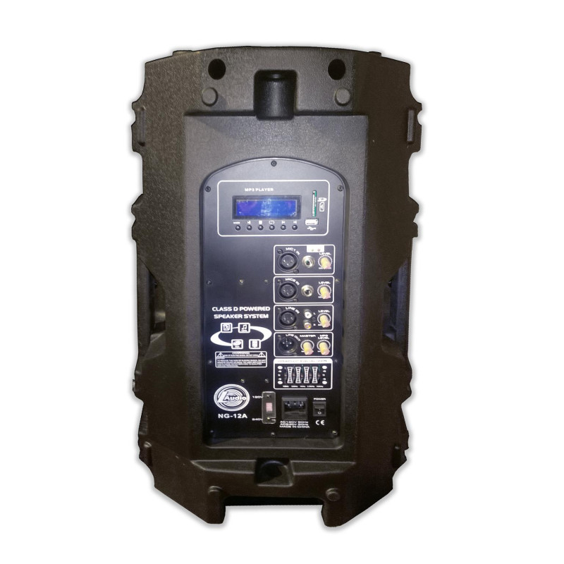 L-Audio NG-12A активная акустическая система, 12″, 250 Вт 97 дБ, bi-amp, встроенный MP3 плеер SD,USB, пластиковый корпус. 1 микрофонный и 1 линейный вход, 5-ти полосный эквалайзер. Возможность установки на штатив, подвеса (6 точек) и использования как сценический монитор