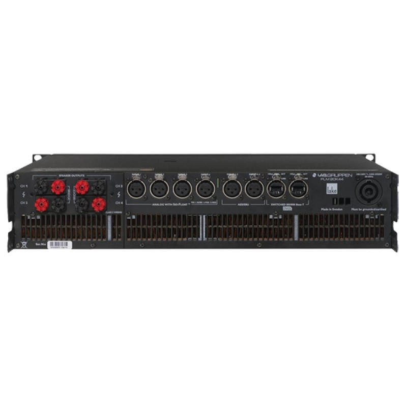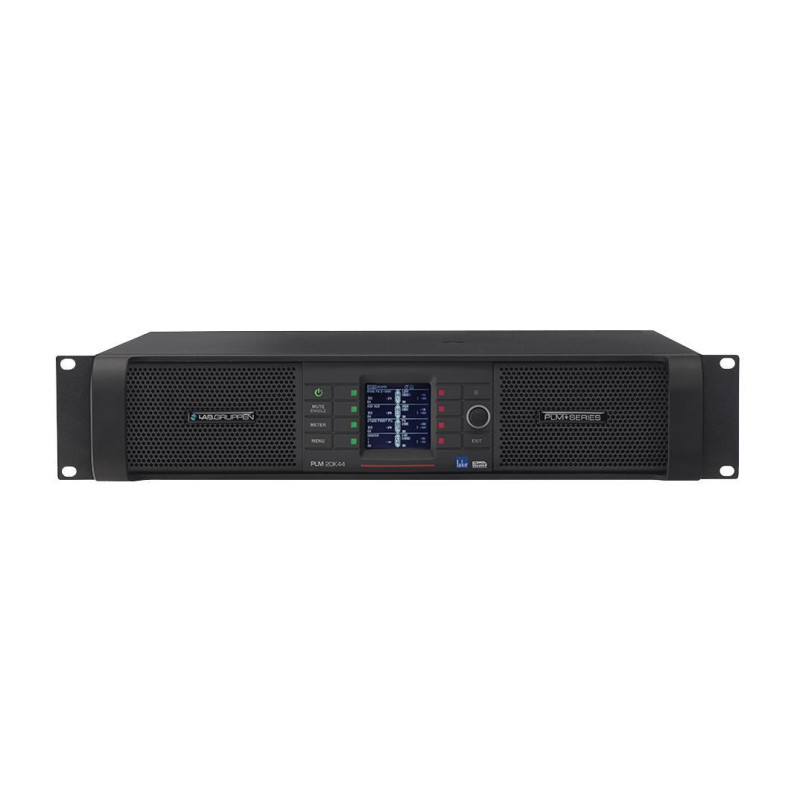 LAB GRUPPEN PLM20K44/BP усилитель мощности с DSP Lake, 4 входа > 4 выхода. Мощность (на канал): 4400Вт•2Ω, 5000Вт•2,67Ω, 4400Вт•4Ω, 2300Вт•8Ω, 1150Вт•16Ω. Входы: 4 аналог XLR, 4 AES (2 пары), Dante (8 входов/8 выходов). Подключение: винтовой зажим. Высота 2U. Вес 17кг