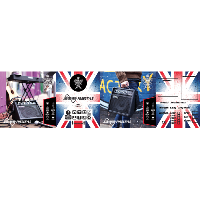 Laney AH-FREESTYLE - Мультиинструментальный комбо 5 Вт, динамик 8'', 3 независимых входа с 2-х полосным эквалайзером и Delay на каждый канал, AUX вход, автономное питание, вес 8,5 кг.