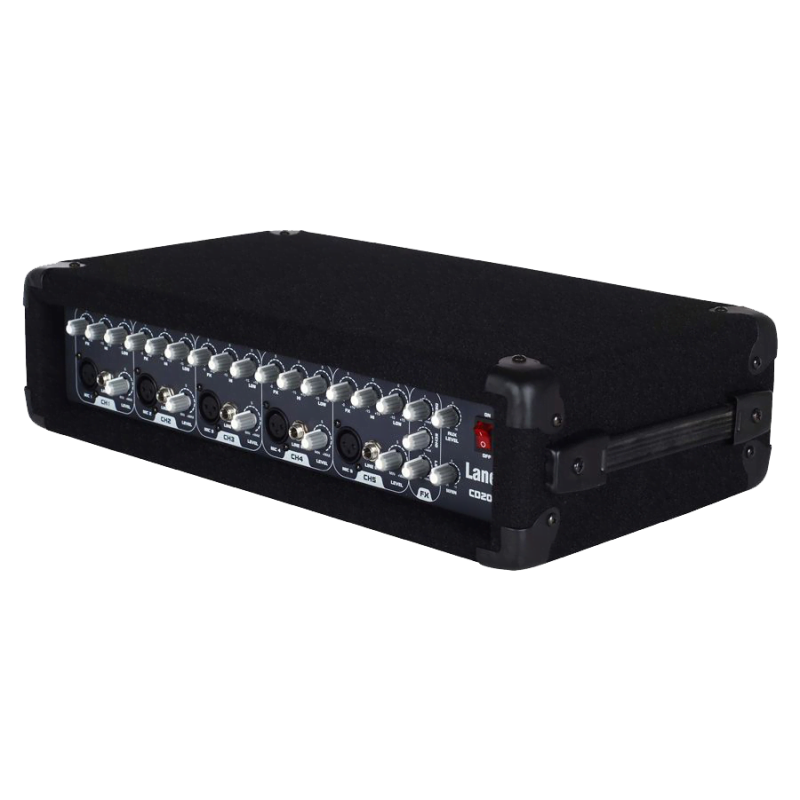 Микшер-усилитель CD200 имеет мощность 2х80 Вт, 5 независимых каналов с низкошумящими предусилителями и встроенные эффекты.