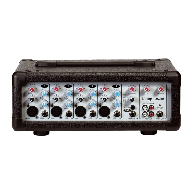 При своих малых размерах и весе микшер-усилитель Laney CD480M обеспечивает 80 Ватт мощности и имеет "на борту" 4 независимых канала, каждый с 2-полсным эквалайзером и посылом на эффекты.