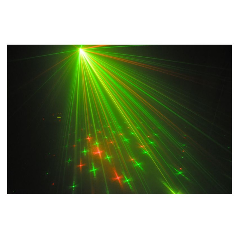 Эффект "мерцания'' более, чем 100 красных и 100 зеленых лазерных лучей в форме звезд, пересекающихся друг с другом, с углом раскрытия 40°