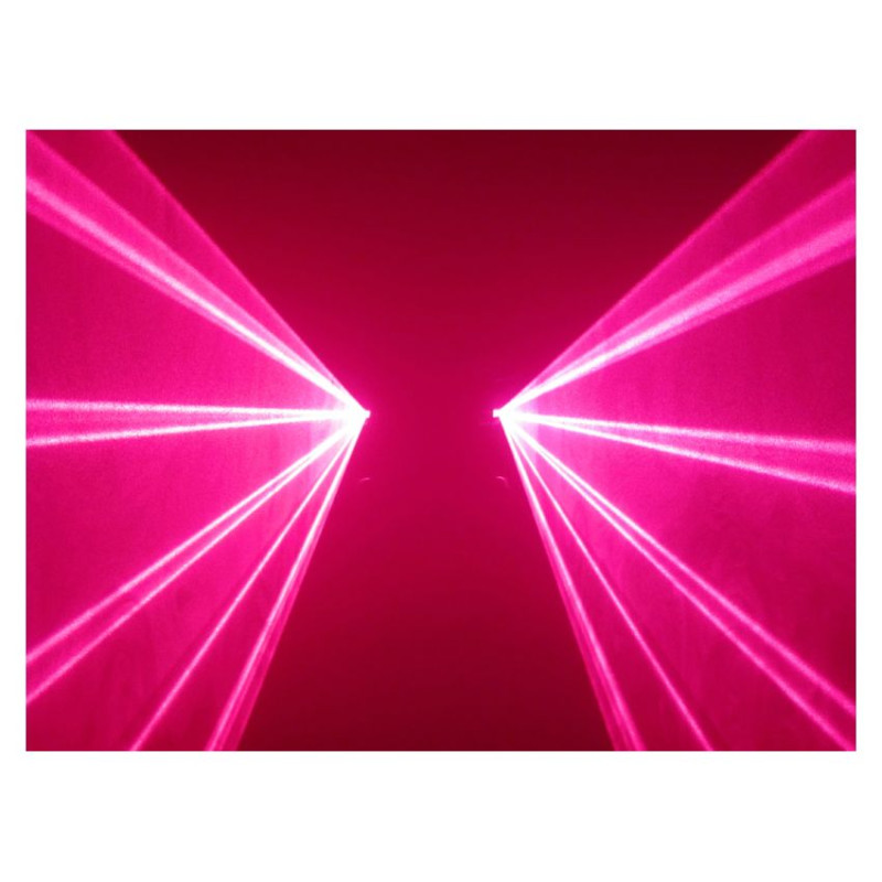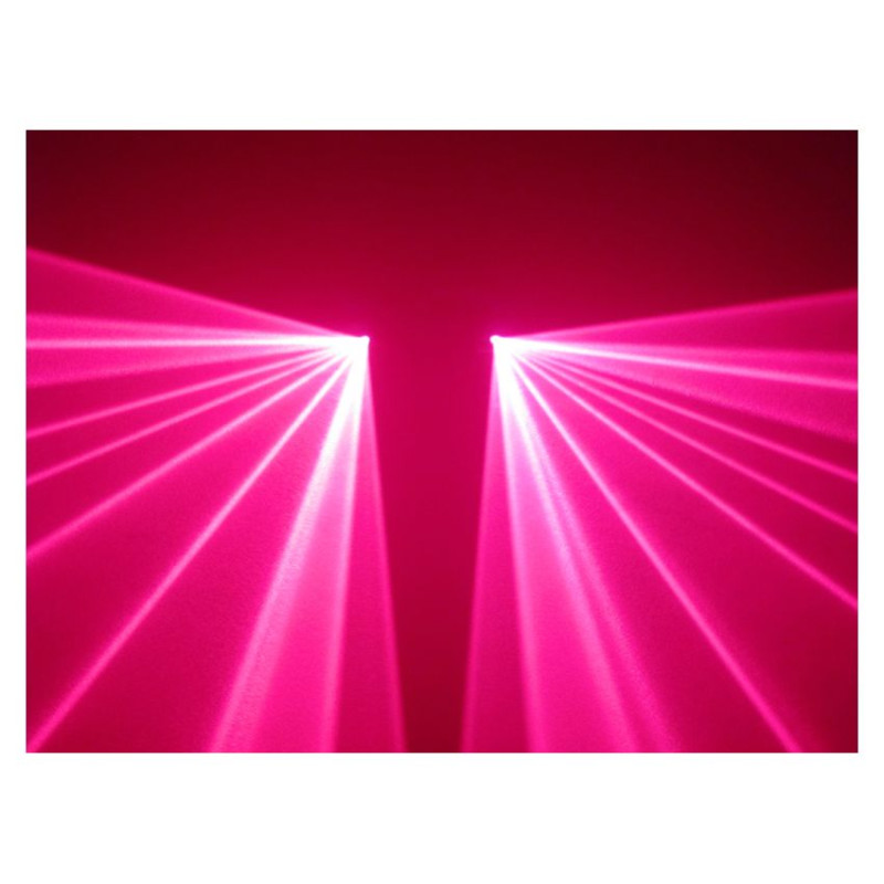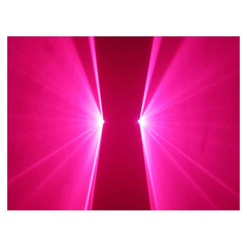 - Модель:Двух лучевой DPSS лазер, Розовый: 100mW+ 100mW, DMX