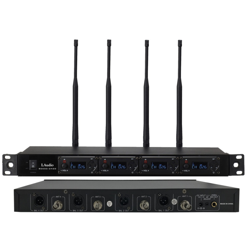 LAudio 8000C-2H2D - 4-канальная беспроводная микрофонная система состоит из 4 наборов независимых модулей УВЧ-приемников с частотами 478-638 МГц.