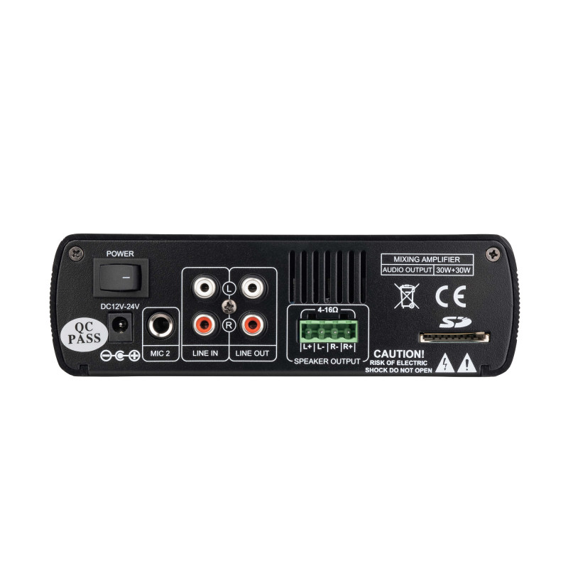 - Модель:Трансляционный микшер-усилитель, 2x30 Вт., MP3, Bluetooth