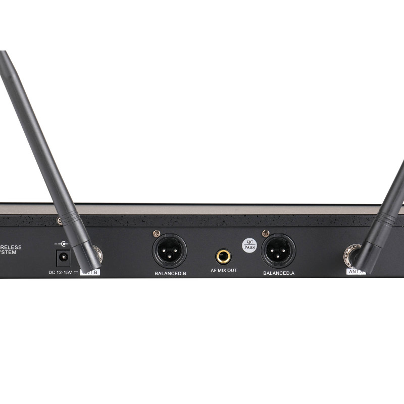 Радиосистемы с такой конфигурацией микрофонов встречаются достаточно редко, что делает эту модель отличным альтернативным вариантом двум отдельным системам. Ручной передатчик оснащен капсюлем с кардиоидной направленностью, который обеспечивает чистую передачу сигнала. Частотный диапазон обоих микрофонов - от 50 Гц до 17 кГц, при этом АЧХ достаточно ровная, благодаря чему звучание голоса остается естественным. Динамический диапазон - 98 дБ.